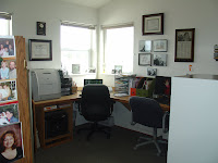 This is a view from the bookshelf of our four chairs. Yes, this is how I write, with three kids within 10 feet of me. And two dogs at my FEET!