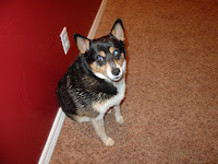 And here are those two dogs I mentioned. Lilly is a seven-year old “Blue Heeler knocked up a Sheltie.” And Jake is a 5-month old, “Pomeranian slipped through the fence and became friends with a Scottie.”